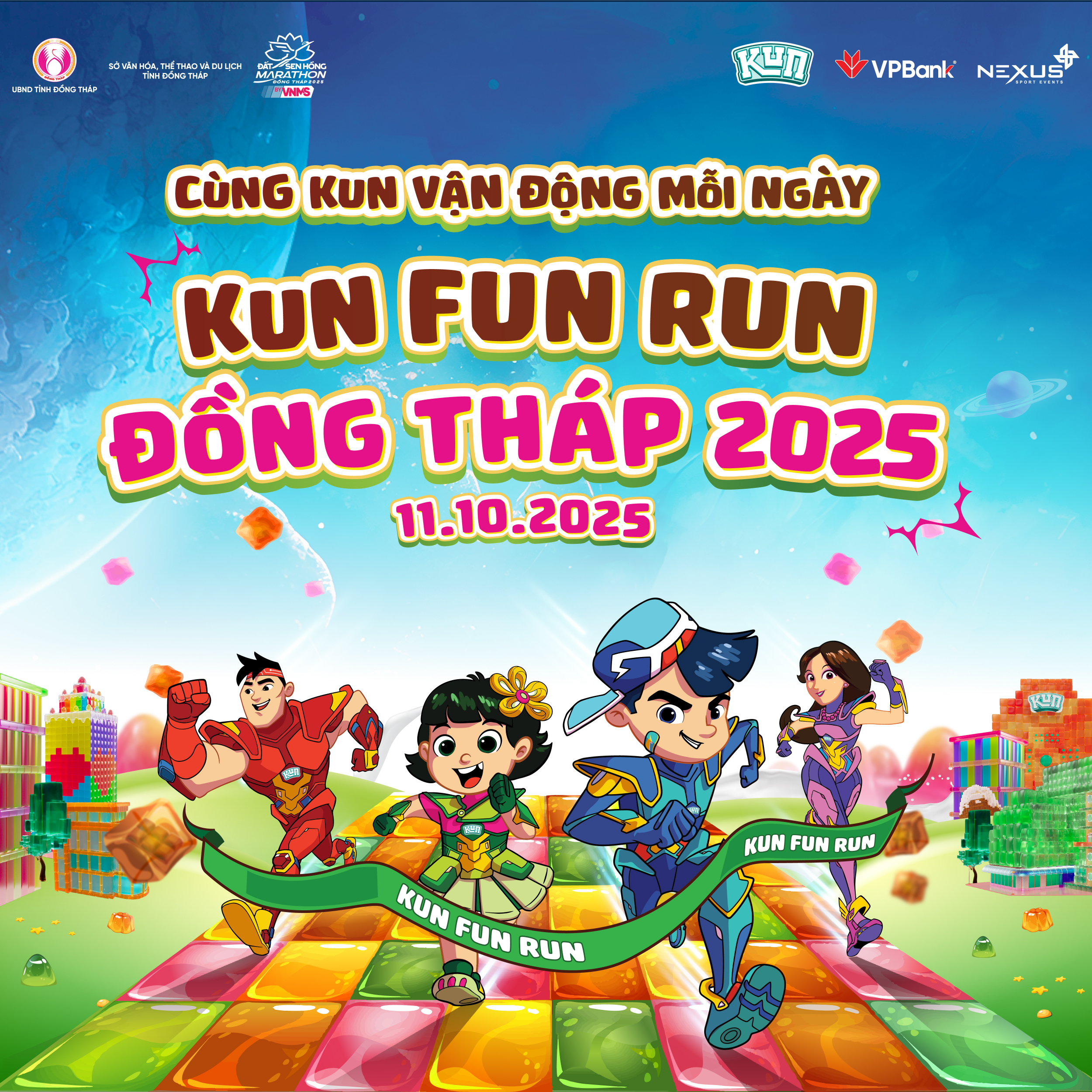 Nằm trong khuôn khổ giải chạy VPBank Đất Sen Hồng Music Marathon 2025, giải chạy KUN Fun Run Đồng Tháp 2025 được đồng hành bởi thương hiệu KUN, hứa hẹn là điểm hẹn cuối tuần lý tưởng cho những gia đình yêu vận động và muốn cùng con tạo nên một ngày thật vui, thật năng động, thật đáng nhớ.